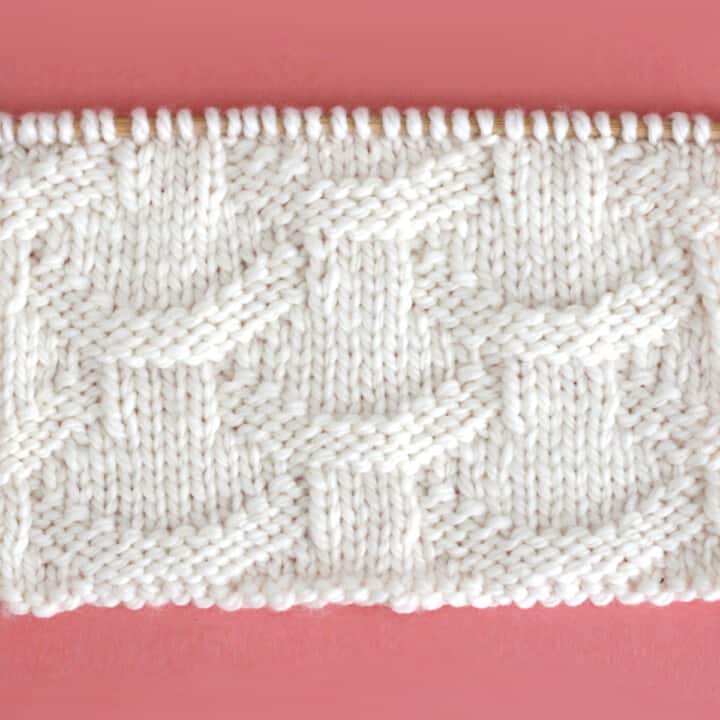 This Basket Loop Stitch Knitting Pattern is an easy pattern that creates a textured illusion of interwoven rings atop a background of vertical pillars.
