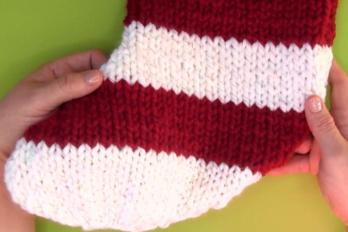 Follow the written pattern to knit up colorful stripes in the smooth Stockinette Stitch.