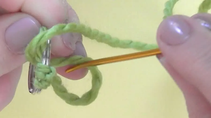 In my example demonstrated below in both my video and photo tutorials, I am using three different yarn colors to best show off the three different steps: Ring Wrap, Spider Web, and Backstitch Weaving. Of course, feel free to use three, two, or even just one color of yarn for your buttons.
