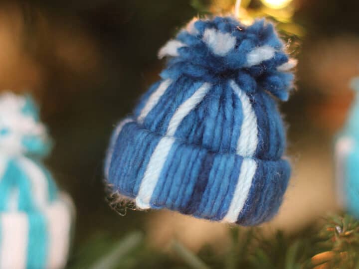 We are going to use recycled metal rings and scrap yarn. Something old is new again… and super cute! My samples were created with split key rings and bulky weighted wool yarn. Feel free to use any sized rings and yarn for your creative project.